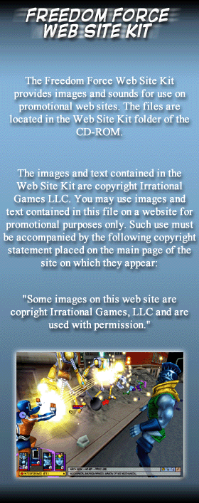 MAIN BONUS CHARACTERS BROWSE ARTWORK VIEW MOVIES VIEW MOVIES WEB SITE KIT FREEDOM FORCE WEB SITE